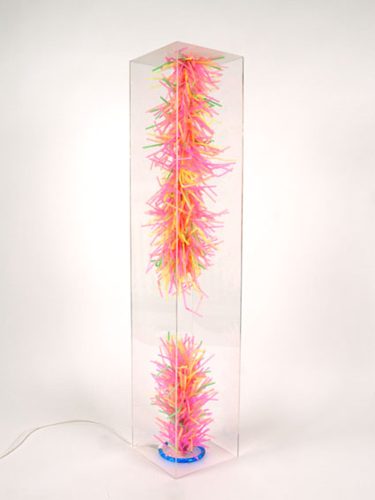 Lichtobjekt. Plexiglas, Strohhalme, Licht, 23 x 23 x 115 cm, 2010.