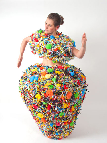 Small Talk. Puppe II. Stahl, Draht, Stoff, Folie, Haushaltsutensilien-Kleber, 160 x 100 x 93 cm, 2009.
