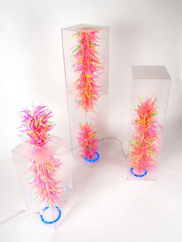 Lichtobjekte. Plexiglas, Strohhalme, Licht, 2010.